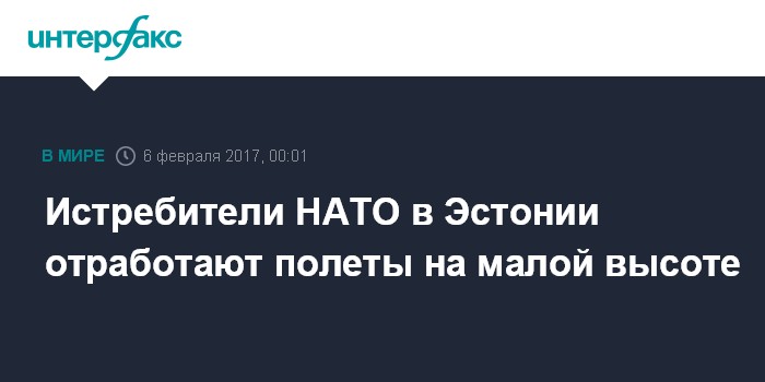 Москва. 6 февраля. INTERFAX.RU - Базирующиеся в Эстонии на авиабазе Эмари (Amari) самолеты НАТО будут отрабатывать на будущей неделе бреющие полеты над территорией страны. Как сообщили "Интерфаксу" в пресс-службе Сил обороны Эстонии, истребители Германии Eurofighter в течение рабочей недели будут совершать полеты на низких высотах (не ниже 500 футов или 152 метра) вдали от населенных пунктов и в первой половине дня.