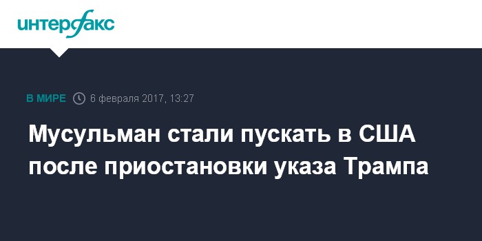Москва. 6 февраля. INTERFAX.RU - Граждане мусульманских стран стали беспрепятственно въезжать в США после того, как по решению судьи было приостановлено действие указа президента Дональда Трампа об ограничениях в миграционной сфере.