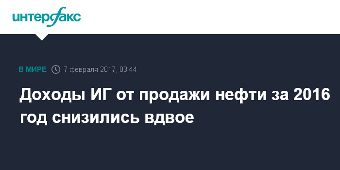 Доходы ИГ от продажи нефти за 2016 год снизились вдвое
