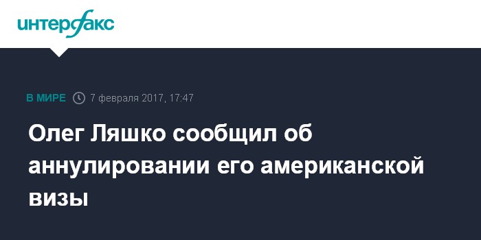 Москва. 7 февраля. INTERFAX.RU - Лидер Радикальной партии Украины Олег Ляшко утверждает, что ему аннулировали недавно полученную визу в США.