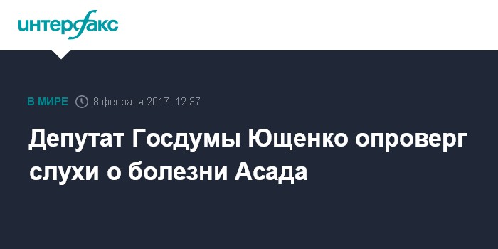 Депутат Госдумы Ющенко опроверг слухи о болезни Асада