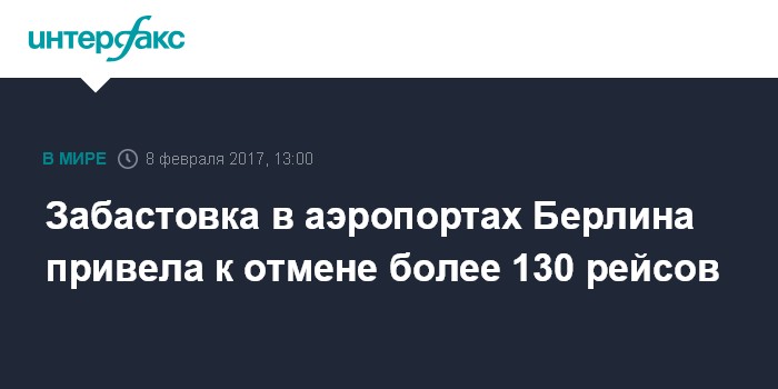 В связи с забастовками были отменены 112 авиарейсов в "Тегеле" и еще 22 - в "Шенефельде". Так, акции протеста затронули маршруты из германской столицы в Лиссабон, Лондон, Стамбул и Осло. Согласно расписанию, опубликованному на сайтах аэропортов, некоторые рейсы в направлении России, в том числе в Санкт-Петербург, задерживаются.