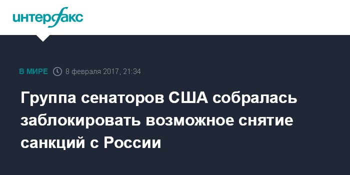 Москва. 8 февраля. INTERFAX.RU - Двухпартийная группа сенаторов США внесла на рассмотрение верхней палаты конгресса проект, предусматривающий снятие санкций с России исключительно с разрешения Конгресса.