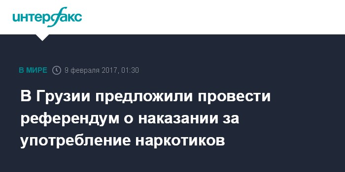 Москва. 9 февраля. INTERFAX.RU - Грузинская оппозиционная партия "Новый политический центр - Гирчи" ("Шишка") выступила с инициативой провести референдум, чтобы выяснить мнение граждан о том, должны ли в Грузии наказывать за употребление наркотиков.