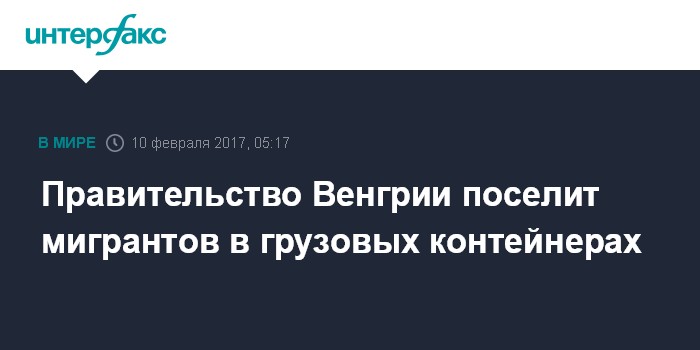 Москва. 10 февраля. INTERFAX.RU - Власти Венгрии планируют расселять иммигрантов в грузовых контейнерах в приграничных лагерях на время обработки их запросов о предоставлении убежища, сообщает агентство Associated Press со ссылкой на представителя департамента премьер-министра Яноша Лазара.