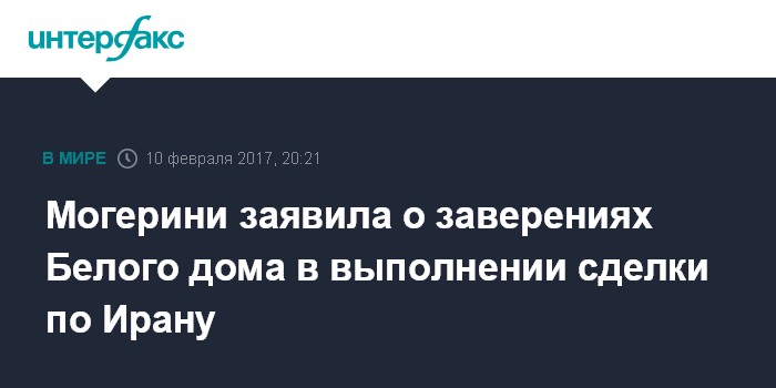 Москва. 10 февраля. INTERFAX.RU - Глава европейской дипломатии Федерика Могерини заявила, что получила от новой администрации США заверения в приверженности полному выполнению ядерной сделки с Ираном.