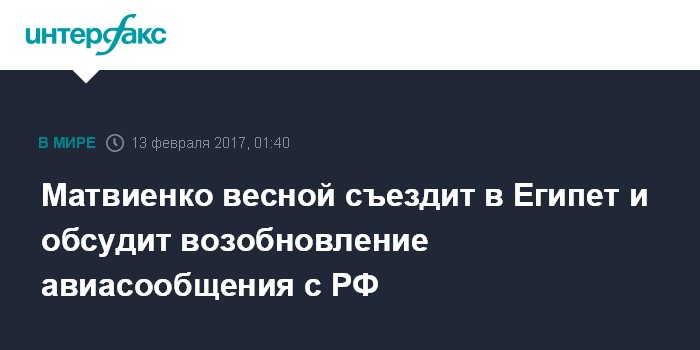 "Это будет первый визит российской делегации такого уровня после десятилетнего перерыва. В египетском парламенте подчеркивают, что две страны связывают теплые отношения, которые не под силу разрушить ни террористам, ни поддерживающим их странам. В ходе переговоров египетская сторона намерена поднять вопрос о возобновлении воздушного сообщения между двумя странами", - пишет газета.