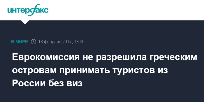 Москва. 13 февраля. INTERFAX.RU - Европейская комиссия не одобрила проект по безвизовому посещению греческих островов в восточной части Эгейского моря туристами из стран, не являющихся членами ЕС, сообщает греческий портал Rodiaki. Кроме того, из-за вопросов безопасности и проблем с беженцами не была продлена специальная визовая программа для турецких путешественников, которая действовала с 2012 года. Граждане Турции, прибывая в порты восточных островов Эгейского моря морским транспортом, получали однодневную визу. Действие этой программы закончилось 30 октября прошлого года.