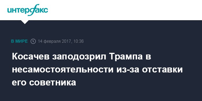 Москва. 14 февраля. INTERFAX.RU - Отставка Майкла Флинна с поста советника президента США по национальной безопасности хуже паранойи, возможно, Дональда Трампа загоняют в угол, считает председатель комитета Совета Федерации по международным делам Константин Косачев.