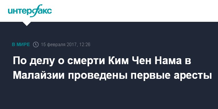 Москва. 15 февраля. INTERFAX.RU - Малайзийские власти провели несколько арестов в связи со смертью старшего сводного брата северокорейского лидера Ким Чем Ына - 45-летнего Ким Чен Нама, сообщает в среду малайзийское издание Malaysia Daily.