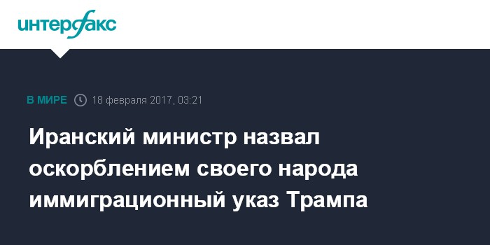 Иранский министр назвал оскорблением своего народа иммиграционный указ Трампа