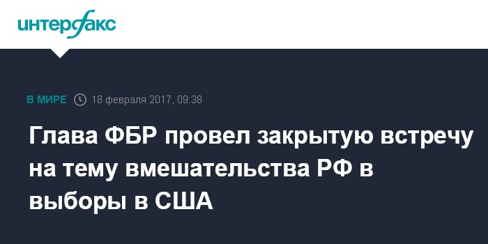 Москва. 18 февраля. INTERFAX.RU - Глава ФБР Джеймс Коми провел закрытую встречу с членами сенатского комитета по разведке о предполагаемом вмешательстве России в ход президентских выборов, пишет издание Politico.