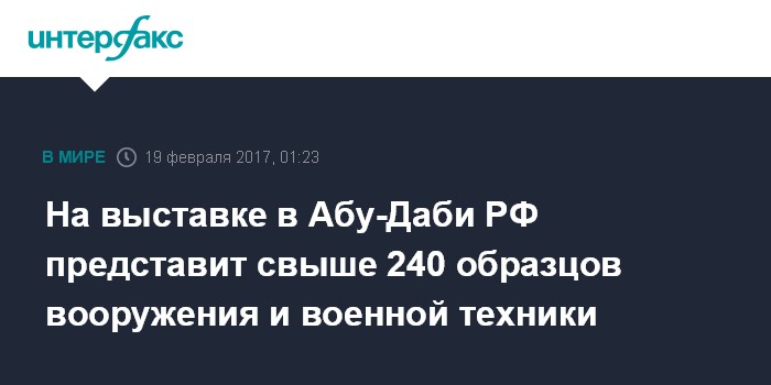 На выставке в Абу-Даби РФ представит свыше 240 образцов вооружения и военной техники