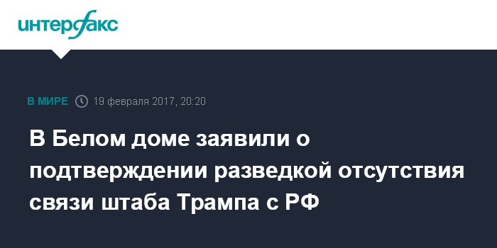 Москва. 19 февраля. INTERFAX.RU - Глава администрации президента США Райнс Прибус заявил, что американская разведка получила подтверждение отсутствия связи избирательного штаба Дональда Трампа с Россией.