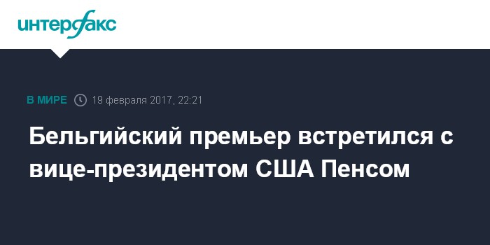 Москва. 19 февраля. INTERFAX.RU - Премьер-министр Бельгии Шарль Мишель встретился в воскресенье в ходе ужина с вице-президентом США Майком Пенсом, передал телеканал RTBF.