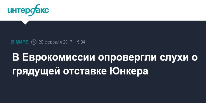 Москва. 20 февраля. INTERFAX.RU - Председатель Европейской комиссии Жан-Клод Юнкер уже ясно и неоднократно заявлял, что не будет соискателем второго срока на этом посту, уходить в отставку он также не собирается, заявил в понедельник журналистам в Брюсселе официальный представитель ЕК Александр Винтерштейн.
