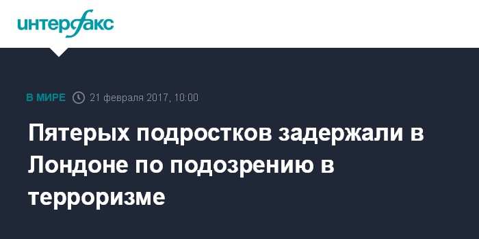 Москва. 21 февраля. INTERFAX.RU - Сотрудники британской полиции задержали в Лондоне пятерых подростков, подозреваемых в причастности к террористической деятельности, сообщает во вторник местная полиция.