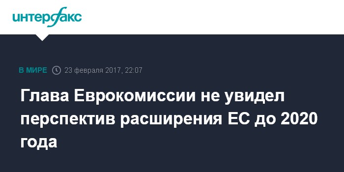 Москва. 23 февраля. INTERFAX.RU - Председатель Еврокомиссии Жан-Клод Юнкер не видит перспектив приема в Евросоюз новых членов, по крайней мере, до истечения своего мандата в 2019 году.