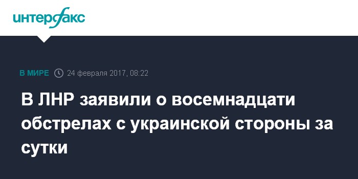 Москва. 24 февраля. INTERFAX.RU - Украинские военные восемнадцать раз за сутки обстреляли территорию самопровозглашенной Луганской народной республики, сообщили "Интерфаксу" в Народной милиции ЛНР.