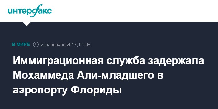 Москва. 25 февраля. INTERFAX.RU - Сотрудники иммиграционной службы на несколько часов задержали сына легендарного боксера Мохаммеда Али в аэропорту Форт-Лодердейл во Флориде, пишет в пятницу The Hill.