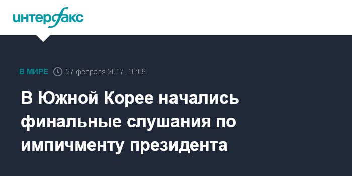 Москва. 27 февраля. INTERFAX.RU - Конституционный суд Южной Кореи в понедельник приступил к финальной стадии рассмотрения дела президента Пак Кын Хе, в отношении которой 9 декабря 2016 года парламент начал процедуру импичмента, сообщает The Korea Times.
