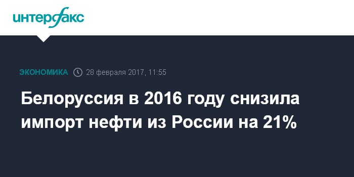 Белоруссия в 2016 году снизила импорт нефти из России на 21%