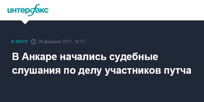 Москва. 28 февраля. INTERFAX.RU - Судебный процесс по делу 330 человек, подозреваемых в причастности к попытке военного переворота в Турции в июле прошлого года, начался в Анкаре, сообщает во вторник Анатолийское агентство новостей.