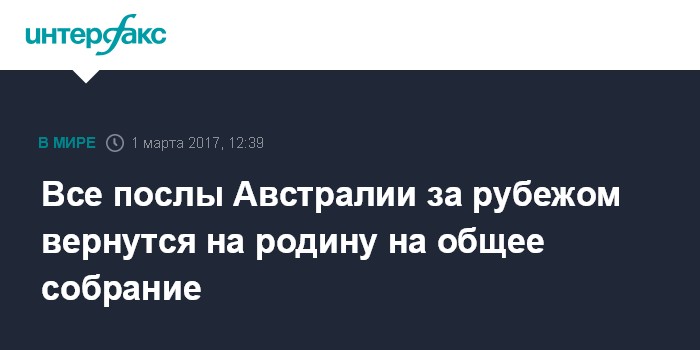Москва. 1 марта. INTERFAX.RU - Министр иностранных дел Австралии Джули Бишоп заявила в среду, что МИД страны намерен вызвать всех послов в Австралию на общее собрание, сообщили в среду местные СМИ.