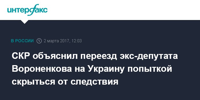 СКР объяснил переезд экс-депутата Вороненкова на Украину попыткой скрыться от следствия