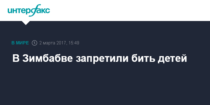 Москва. 2 марта. INTERFAX.RU - Верховный суд Зимбабве запретил телесные наказания детей в школах и дома, сообщила в четверг "Би-би-си". Судебное решение было принято после жалобы одной женщины, которая обнаружила следы побоев на теле своей шестилетней дочери, когда та вернулась из школы.