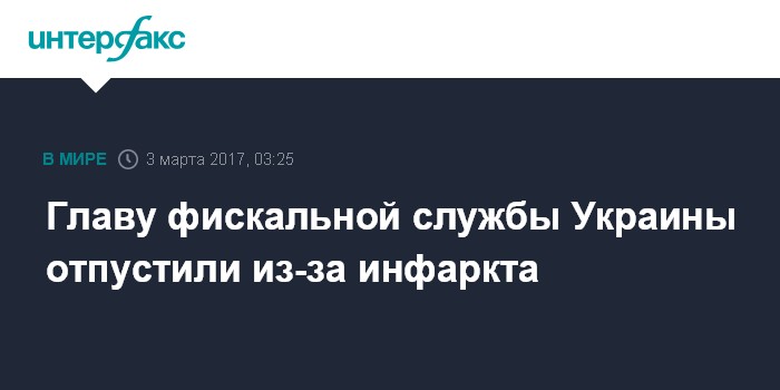 Главу фискальной службы Украины отпустили из-за инфаркта