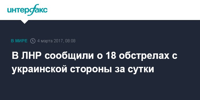 Москва. 4 марта. INTERFAX.RU - Украинские военные 18 раз за прошедшие сутки обстреляли территорию самопровозглашенной Луганской Народной Республики, сообщили "Интерфаксу" в Народной милиции ЛНР.