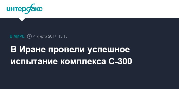 Москва. 4 марта. INTERFAX.RU - В Тегеране успешно испытали комплекс С-300 в рамках учений сил ПВО, передает в субботу агентство "Тасним".