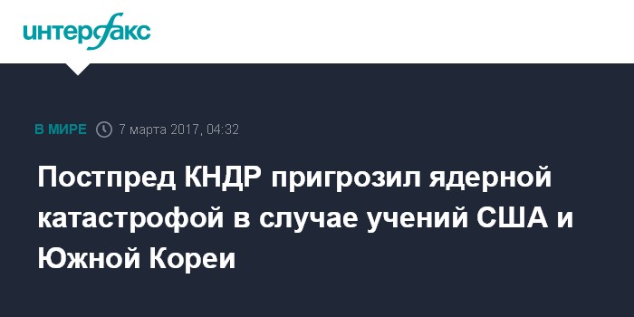 Постпред КНДР пригрозил ядерной катастрофой в случае учений США и Южной Кореи