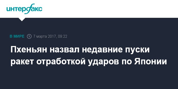 Москва. 7 марта. INTERFAX.RU - Пхеньян во вторник заявил, что осуществленный им в ночь на понедельник пуск четырех баллистических ракет явился отработкой перспективных ударов по американским военным базам на территории Японии.