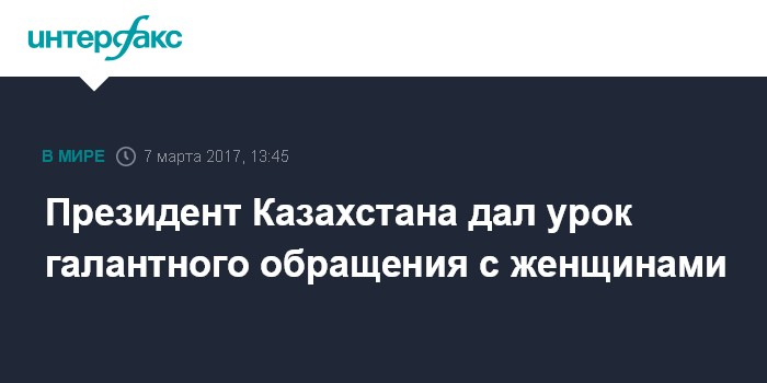 Москва. 7 марта. INTERFAX.RU - Президент Казахстана Нурсултан Назарбаев поздравил женщин страны с Международным женским днем. Во время поздравления он рассказал об искусстве галантного отношения к женщинам.