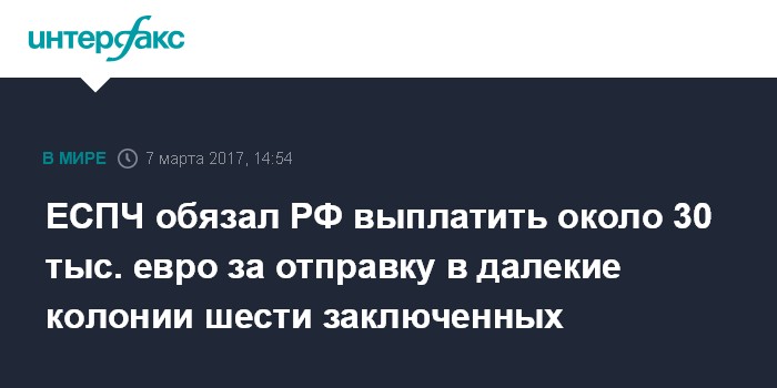 ЕСПЧ обязал РФ выплатить около 30 тыс. евро за отправку в далекие колонии шести заключенных