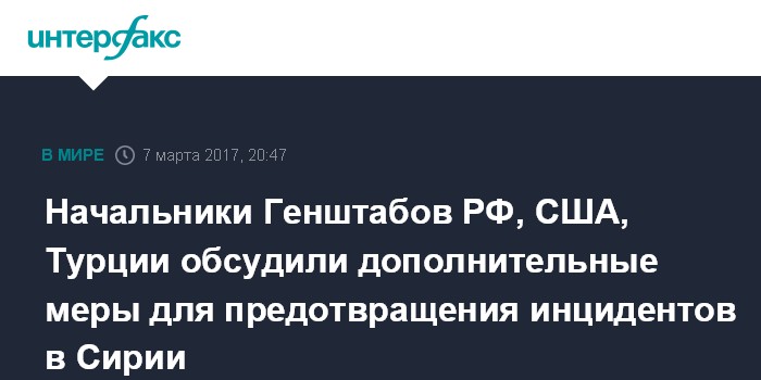 Начальники Генштабов РФ, США, Турции обсудили дополнительные меры для предотвращения инцидентов в Сирии