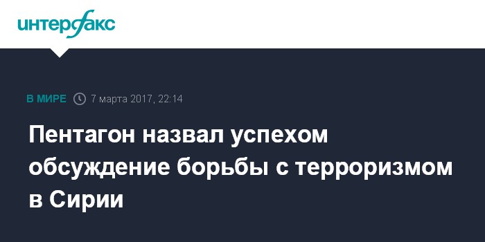 Пентагон назвал успехом обсуждение борьбы с терроризмом в Сирии