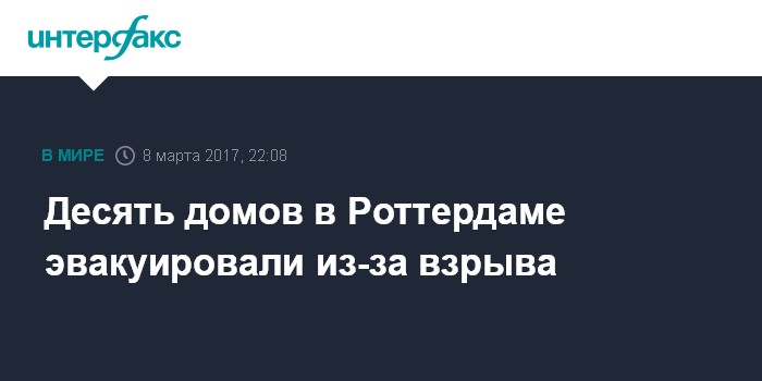 Москва. 8 марта. INTERFAX.RU - Эвакуация жителей не менее 10 домов проведена в среду неподалеку от центральной части нидерландского города Роттердама после взрыва, сообщает в среду интернет-портал нидерландского издания "Телеграаф".