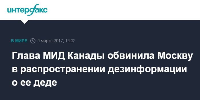 Глава МИД Канады обвинила Москву в распространении дезинформации о ее деде