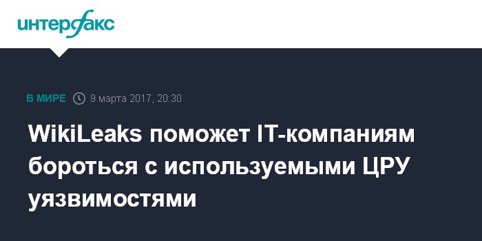 Москва. 9 марта. INTERFAX.RU - Wikileaks поможет IT-компаниям бороться с уязвимостями, которые используются спецслужбами, передав им информацию о способах кибершпионажа Центрального разведывательного управления (ЦРУ) США, сообщает AP.