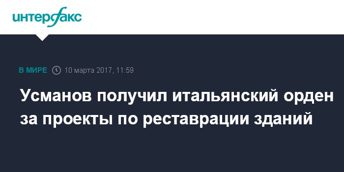 Усманов получил итальянский орден за проекты по реставрации зданий