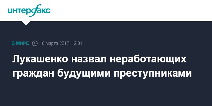"Именно этот декрет как раз направлен на профилактику. Это мощное профилактическое действие. Я обращал внимание нашего министра внутренних дел прежде всего на эту проблему. Почему? Потому что человек неработающий (вы лучше меня это знаете) - это будущий преступник", - заявил президент Белоруссии.