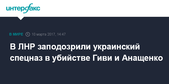 Москва. 10 марта. INTERFAX.RU - Министерство государственной безопасности самопровозглашенной Луганской Народной Республики обвинило бойцов 8-ого полка спецназа Вооруженных сил Украины (ВСУ) в убийстве командира батальона "Сомали" Михаила Толстых, более известного как Гиви.