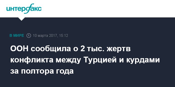 Москва. 10 марта. INTERFAX.RU - Жертвами возобновившегося конфликта между Анкарой и Рабочей партии Курдистана (РПК) стали уже около 2 тыс. человек с июля 2015 года по декабрь 2016 года, говорится в докладе Комитета по правам человека ООН, распространенном в пятницу.