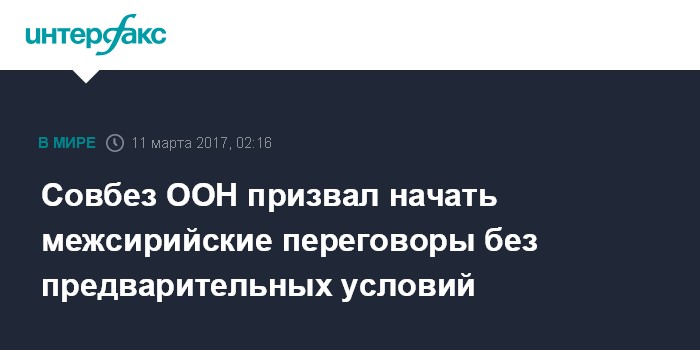 Москва. 11 марта. INTERFAX.RU - С нетерпением ждет возобновления межсирийских переговоров и призывает стороны сирийского конфликта принять участие в них без предварительных условий Совет Безопасности ООН.