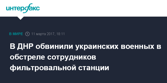 Москва. 11 марта. INTERFAX.RU - Во время эвакуации персонала Донецкой фильтровальной станции (ДФС) украинские военные открыли огонь, сообщил журналистам представитель минобороны самопровозглашенной Донецкой народной республики.