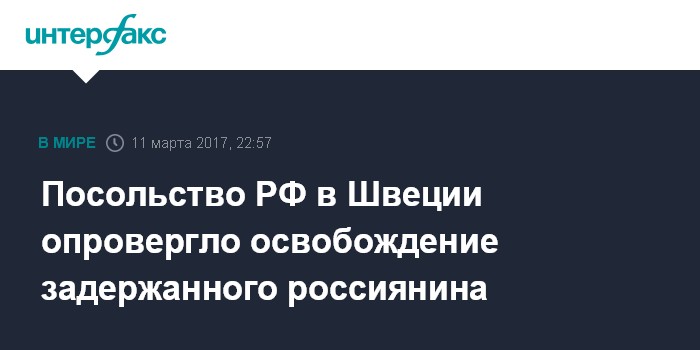 Посольство РФ в Швеции опровергло освобождение задержанного россиянина