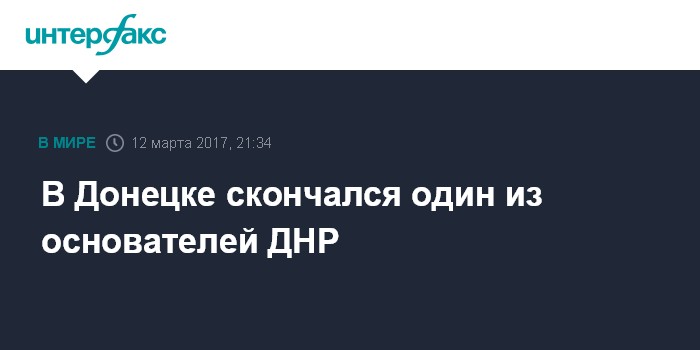 Москва. 12 марта. INTERFAX.RU - Один из основателей самопровозглашенной Донецкой Народной Республики, организатор "Русской весны" в Донбассе Владимир Макович скончался в Донецке, сообщил "Интерфаксу" руководитель проекта News Front Константин Кнырик.